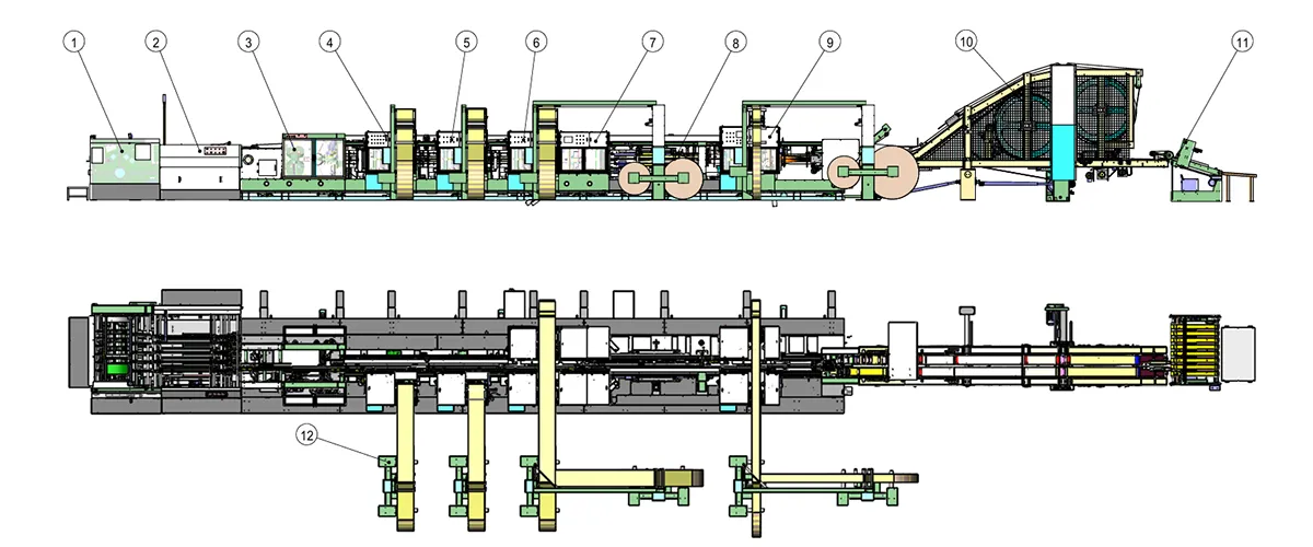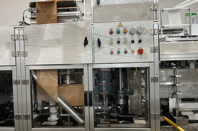 Новейшее оборудование для изготовления дна клапанных мешков использует аналогово-цифровое управление с системой регулировки без инструментов. Дноуеладчик оснащен 50 серводвигателями, что позволяет переключаться между различными спецификациями бумажных мешков одним щелчком.