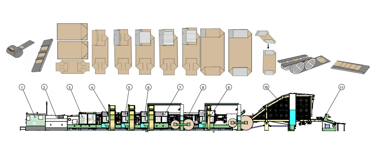 Автоматическая линия формирования и склейки дна, также известная как автоматический дноукладчик, предназначена для производства многослойных бумажных мешков для хранения и транспортировки сыпучих материалов. Наша компания предлагает автоматический дноукладчик с максимальной производительностью 300 мешков в час.